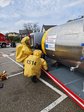 Die dritte Station stellte besondere Anforderungen an die Teilnehmer: Unter Schutzstufe 3 mussten verschiedene praxisnahe Szenarien bewältigt werden. Dazu zählten unter anderem das Abdichten von Leckagen, das Auffangen austretender Flüssigkeiten sowie weitere typische Maßnahmen bei Schadstoffereignissen.